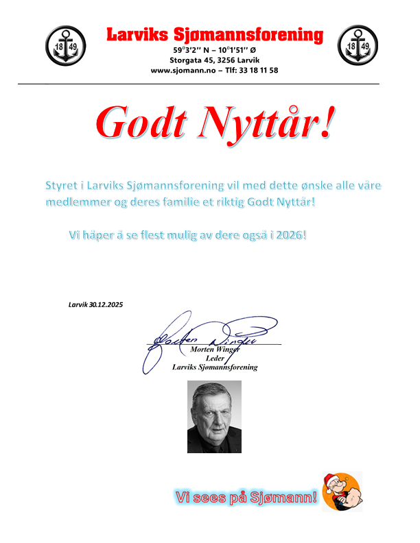 Som vi gjorde for alle som fylte runde år første halvår, skal vi nå i desember feire alle som har fylt rundt år i andre halvår, i tillegg til et medlem som i år kan feire 50 år i Larviks Sjømannsforening!